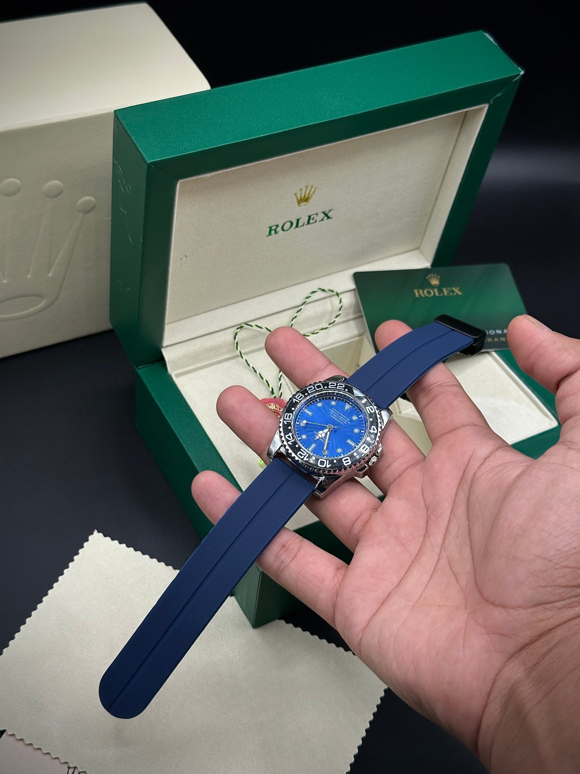 "The Roley submariner magnetic lock watch offers high quality at an affordable price. Its silicone straps provide durability and comfort for everyday wear. As an industry expert, trust in the magnetic lock's secure hold and the submariner's sleek design."
